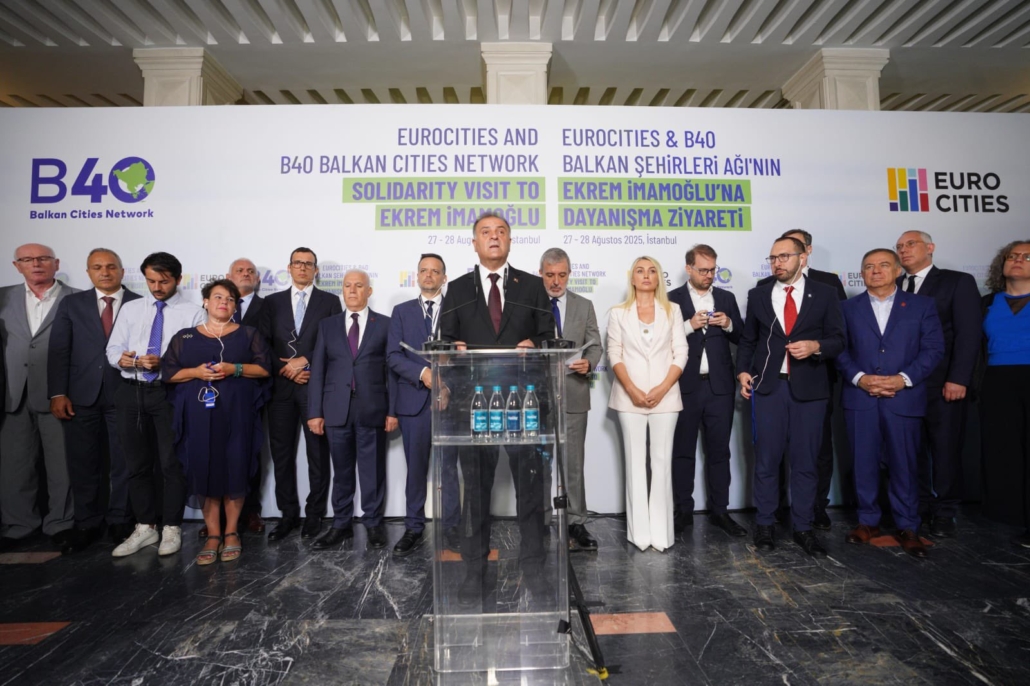 Mayors from Eurocities and the B40 Balkan Cities Network visited Istanbul on 27–28 August 2025 to express solidarity with the city’s elected Mayor and founder of the B40 Network, Ekrem İmamoğlu. The delegation included the President of the B40 Balkan Cities Network & Sofia’s Mayor Vasil Terziev, as well as Athens’ Mayor Haris Doukas, Zagreb’s Mayor Tomislav Tomašević, Barcelona’s Mayor Jaume Collboni, Utrecht’s Mayor Sharon Dijksma, Timișoara’s Mayor Dominic Fritz and Budapest’s Mayor Gergely Szilveszter Karácsony alongside representatives from Madrid and Eurocities.