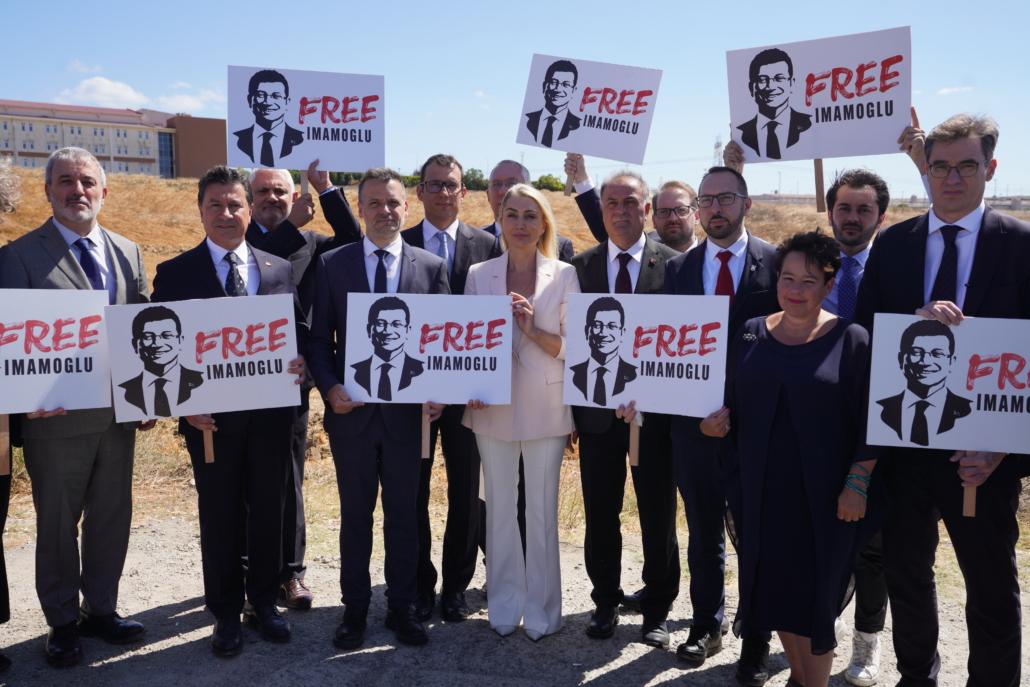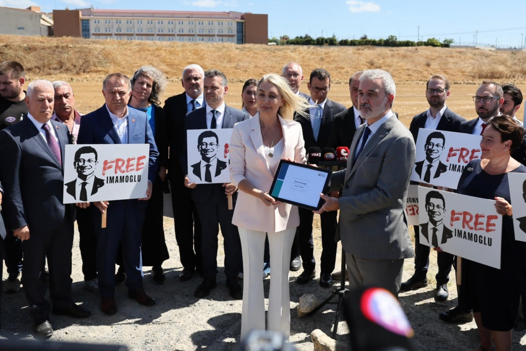 On 27 August, following a dinner hosted in Emirgan by Istanbul Metropolitan Municipality (IMM) Acting Mayor Nuri Aslan, the delegation attended a rally organized by the Republican People’s Party (CHP) in Beyoğlu. The next day, they met with IMM officials, including B40 Permanent Secretary Barbaros Büyüksağnak, at the municipal headquarters in Saraçhane, where Eurocities’ “Special Democracy Award” for İmamoğlu was presented to Dilek Kaya İmamoğlu.