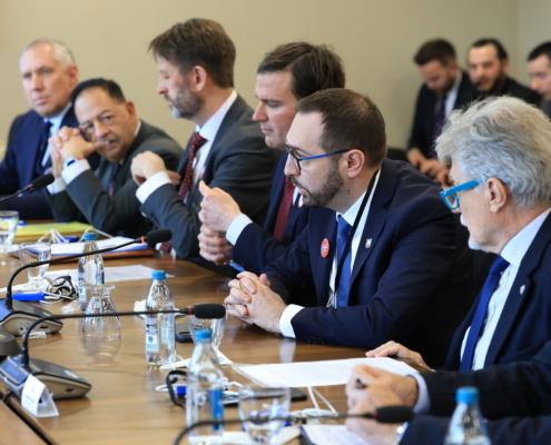 As part of the programme, the delegation met at the IMM headquarters in Saraçhane with IMM Acting Mayor Nuri Aslan and Ms. Dilek Kaya İmamoğlu, the spouse of Mayor Ekrem İmamoğlu. The meeting underlined the importance of solidarity among cities.